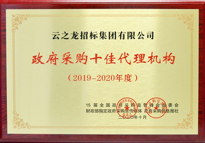 【喜訊】熱烈祝賀云之龍集團榮獲“全國政府采購十佳代理機構(2019-2020年度)”稱號