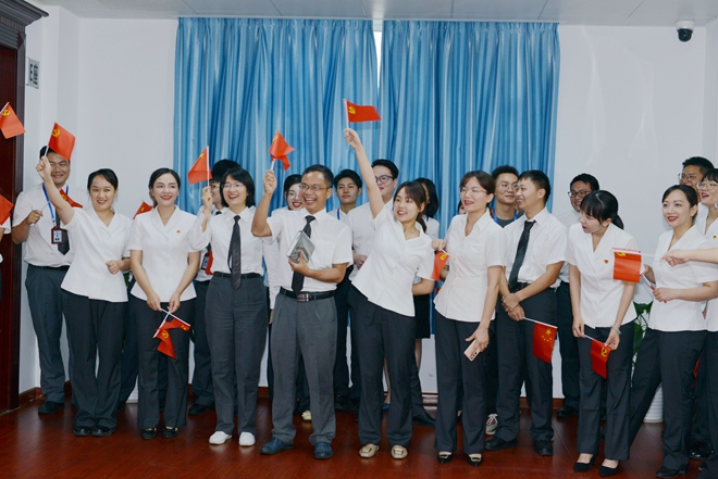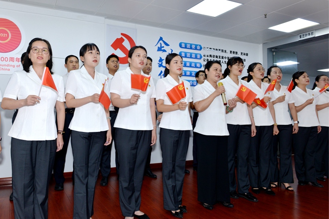 2021年7月1日,云之龍辦公區域傳來響亮的歌聲,現場聚起熱烈的人群、揮舞著紅旗,在云之龍黨員的帶領下,一同唱響《唱支山歌給黨聽》。