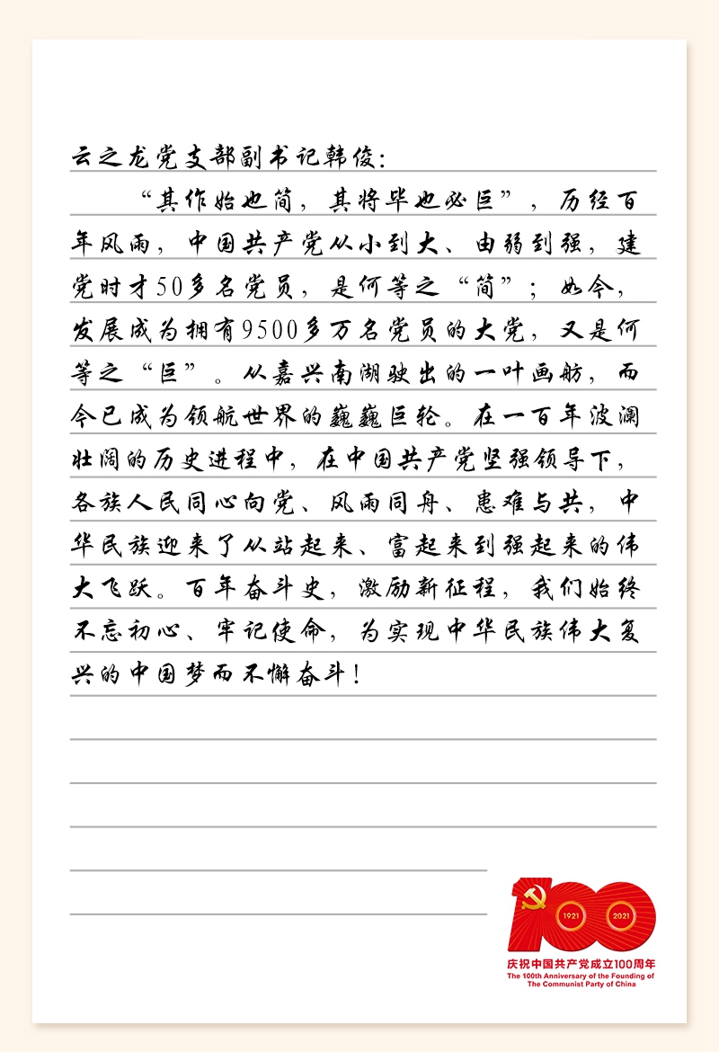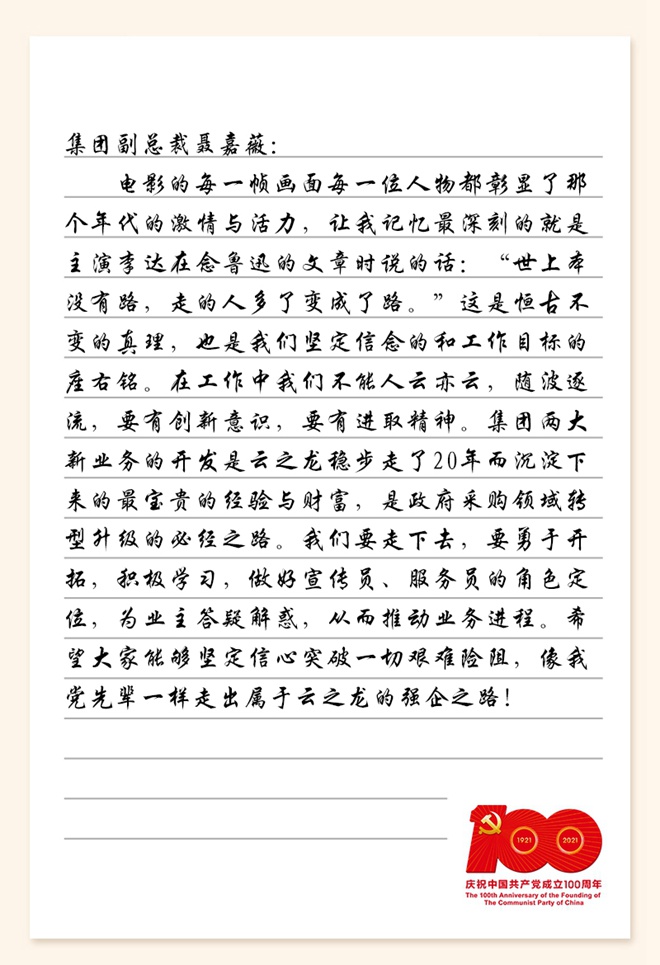 在中國共產黨百年華誕之際,云之龍黨支部開展了一次“走實”又“走心”的黨史學習教育主題黨日活動,黨員同志一起觀看黨史記錄片、學習黨史書籍、重溫入黨誓詞、分享學習心得等。