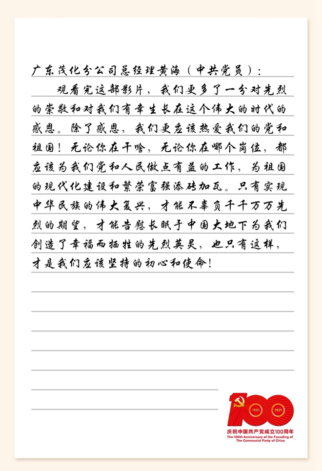 大家觀看完影片后,內心無比震撼,紛紛在集團交流群中分享觀影心得。