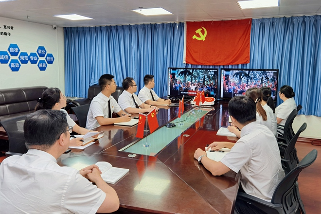 神州萬里,舉國歡慶。7月1日上午,舉世矚目的慶祝中國共產黨成立100周年大會在北京天安門廣場隆重舉行。云之龍集團總部、各地市分公司黨員及員工共同收聽收看大會盛況,共同見證這一偉大時刻,共享偉大祖國榮光!