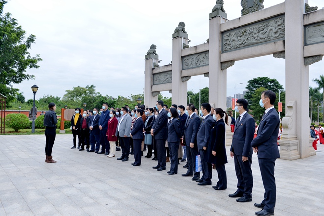 在講解員的帶領下,全體黨員參觀了南寧市孔廟的欞星門、狀元門、狀元橋、泮池等。黨員同志了解孔廟歷史,聆聽孔夫子等諸位先賢的智慧故事,追憶古代圣賢的高尚廉潔品質。