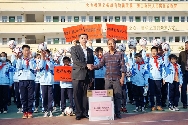 活動中,各個黨組織還給當(dāng)?shù)匦W(xué)的孩子們捐贈了足球、校服和書籍。孩子們拿到足球愛不釋手,舉起足球與大家合影。云之龍黨總支部為小陶村小學(xué)捐贈了一臺打印機及一批耗材,解決學(xué)校老師教學(xué)資料打印難問題,提高教學(xué)效率。