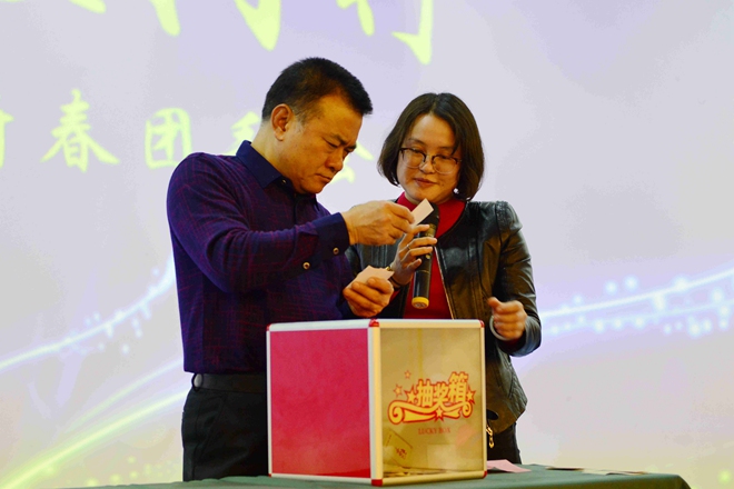 用餐環節,總裁王鐿霖攜云之龍集團高層領導給員工及家屬敬酒拜年,恭賀新春,并給家屬們送上了誠意滿滿的新年紅包。與此同時,行政部總經理劉斯娜組織大家進行驚喜連連的抽獎和微信搶紅包活動,集團為大家準備了各式小家電和大禮包,臺上主持人不斷宣布獲得各類大獎的得主,引起陣陣歡呼,歡聲笑語充滿了整個大禮堂,把整個晚宴氣氛推上了最高潮。