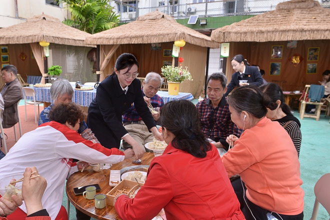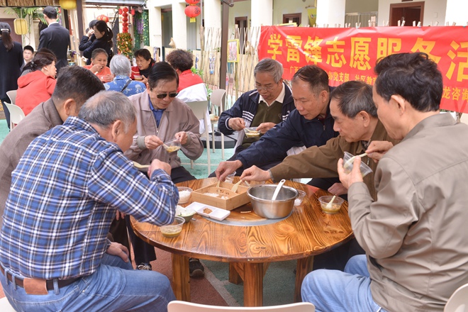 活動現(xiàn)場暖意融融,黨員同志不時為老人添油茶、加小料。一場小小的暖心活動,獲得了社區(qū)老人的點贊。一位老人說道:“你們做的油茶味道很好,喝到心里暖暖的,感謝你們對我們老人的關(guān)心。”