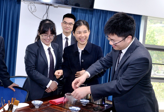 一邊學習傳統茶藝禮儀