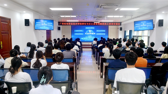 2025年5月8日,廣西機電職業(yè)技術(shù)學(xué)院工程造價專業(yè)近百名師生走進云之龍咨詢集團,開啟了一場別開生面的職業(yè)探索之旅。校企雙方以"理論+實踐"為紐帶,通過沉浸式參觀、行業(yè)大咖分享、互動研討等環(huán)節(jié),為青年學(xué)子搭建起從課堂到職場的"成長階梯"。