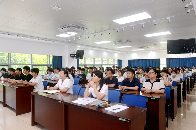 全過程工程咨詢部一級造價師胡冬梅老師,通過具體項目,為學(xué)生展示工程量清單及招標(biāo)控制價的編制流程及編制注意事項。她以自身經(jīng)歷勉勵學(xué)生“行業(yè)在變革,但深耕專業(yè)的‘匠人精神’永遠不會過時。”