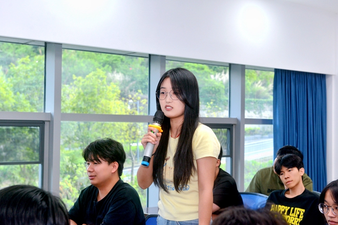 在自由交流環(huán)節(jié),學(xué)生們積極發(fā)言,對具備豐富經(jīng)驗的胡冬梅老師提問,共同探討造價行業(yè)的未來發(fā)展方向和就業(yè)前景等。